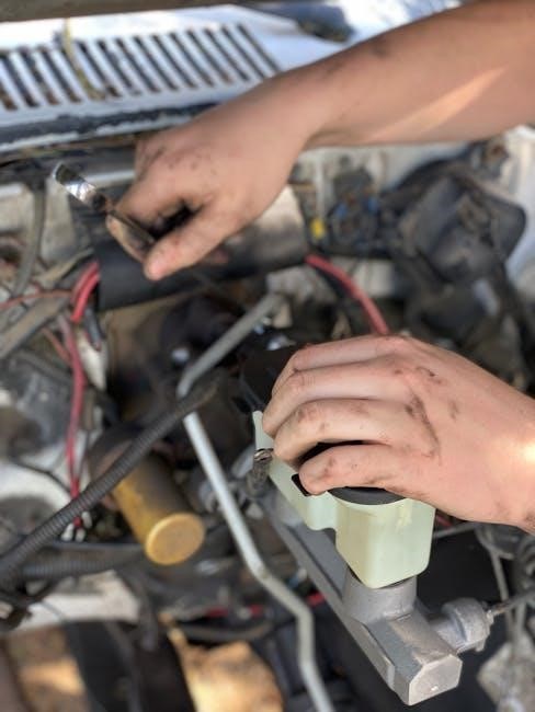 Replacing worn-out components is crucial for maintaining the functionality and safety of a manual garage door. Begin by identifying damaged parts through visual inspection or performance issues like noise or uneven movement. Common replacements include rollers, hinges, cables, and springs. Always refer to the garage door parts diagram for accurate identification; When replacing, ensure compatibility with your specific door model. For springs, consider professional assistance due to high tension risks. For other parts, use appropriate tools like wrenches or cable cutters. After replacement, lubricate moving parts to ensure smooth operation. Regular replacement prevents further damage and enhances door performance. Always follow safety guidelines to avoid accidents.